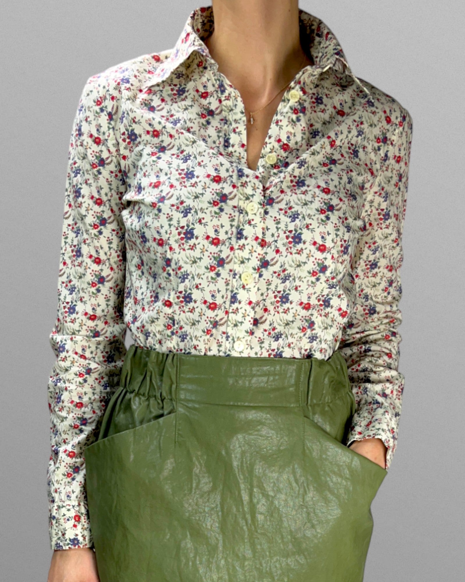 Blommig figursydd skjorta i tunn och skön bomull.