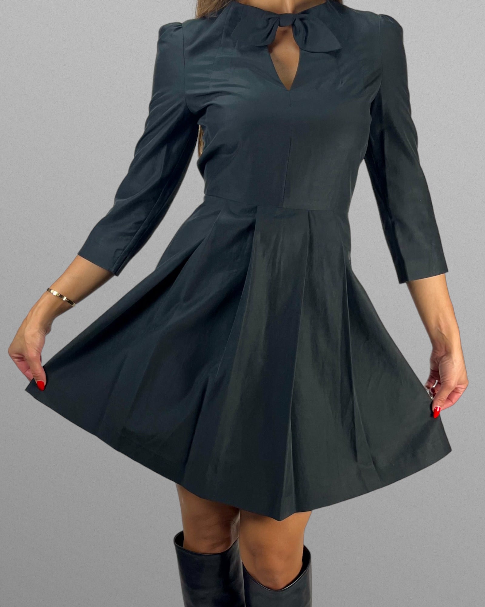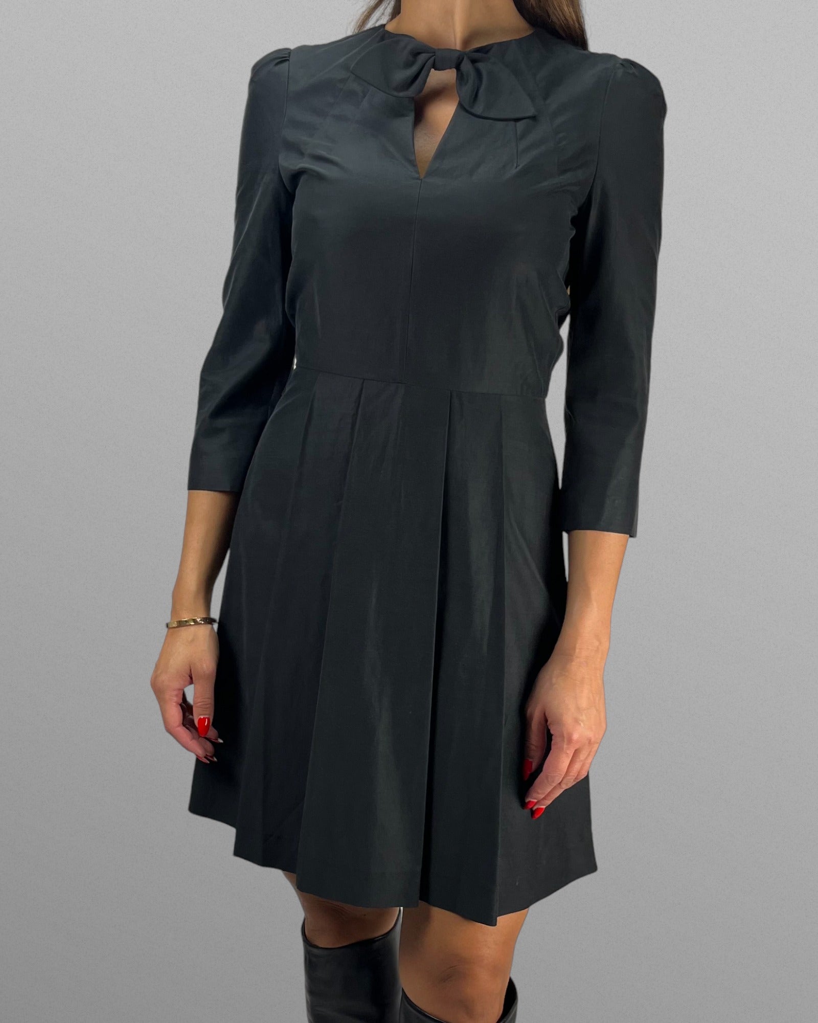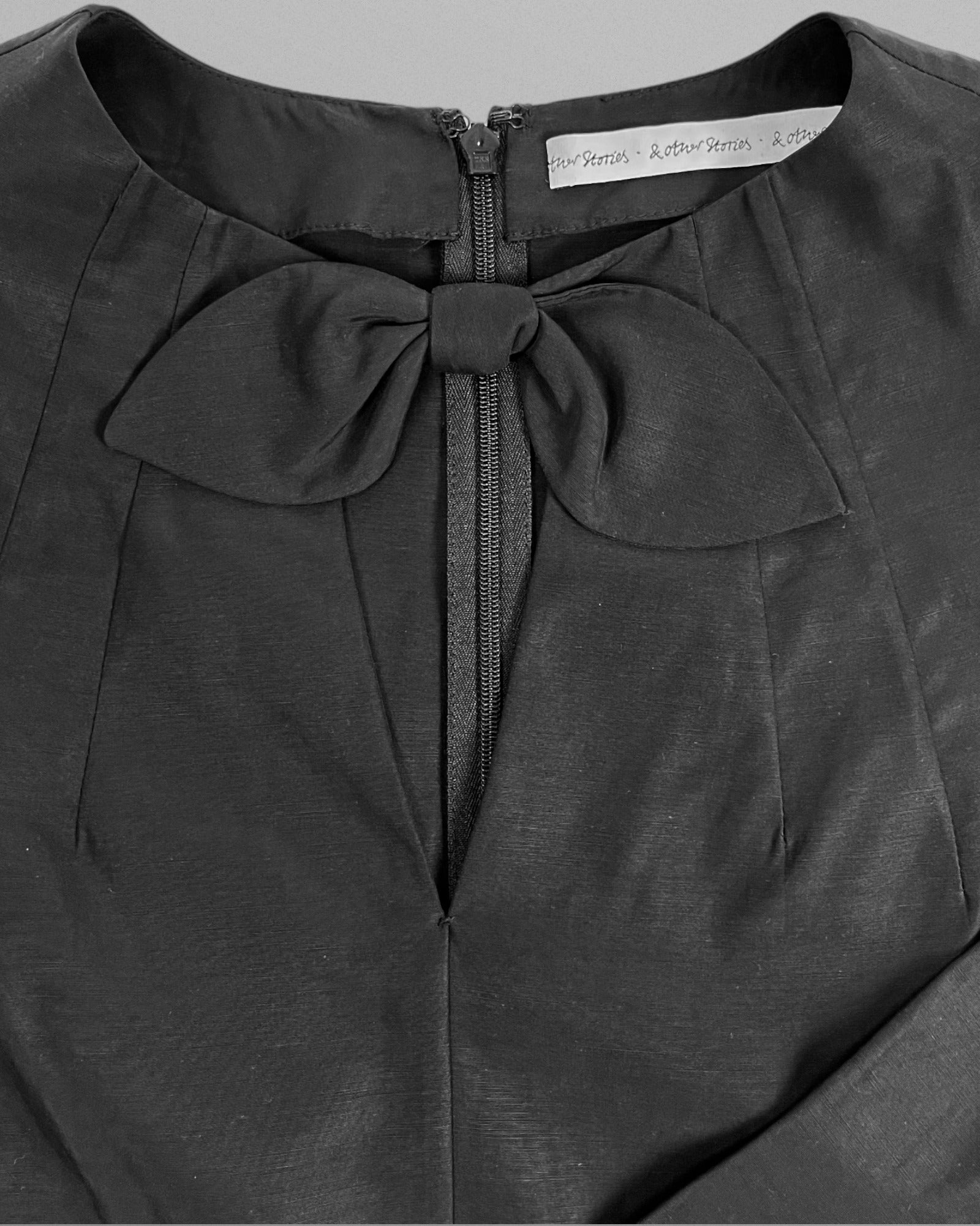 Svart plisserad klänning med rosett framtill från Other Stories.