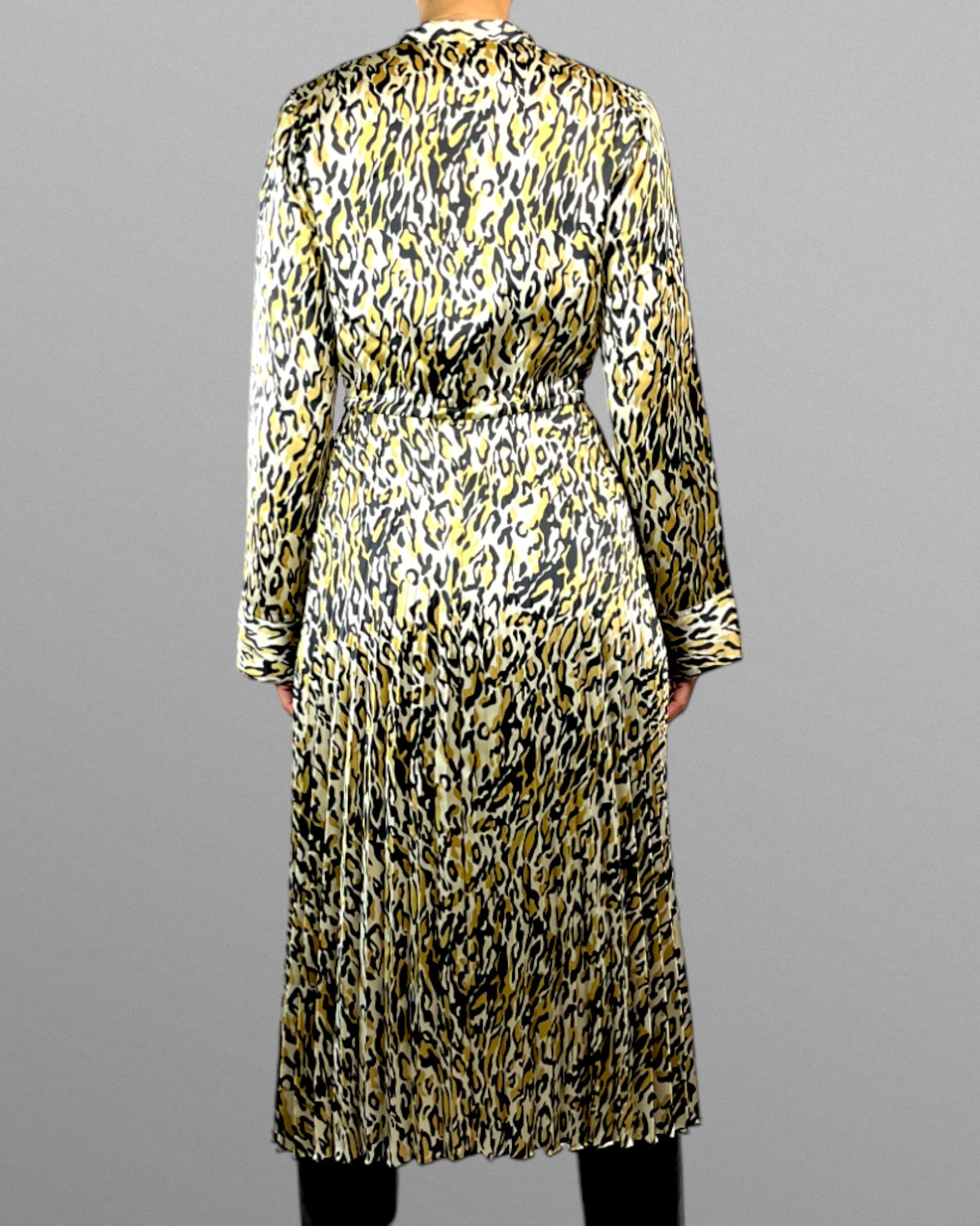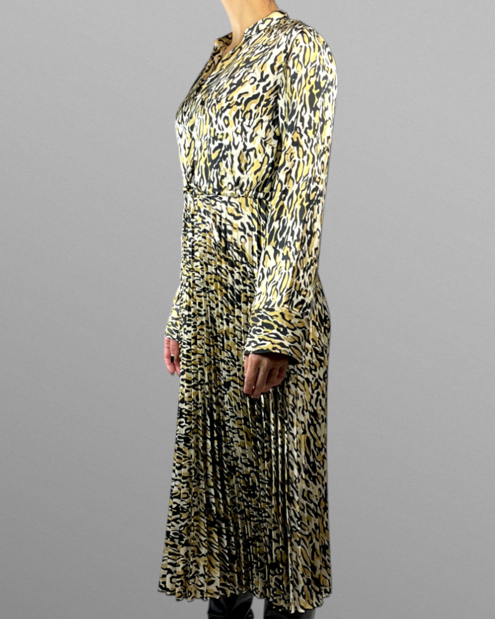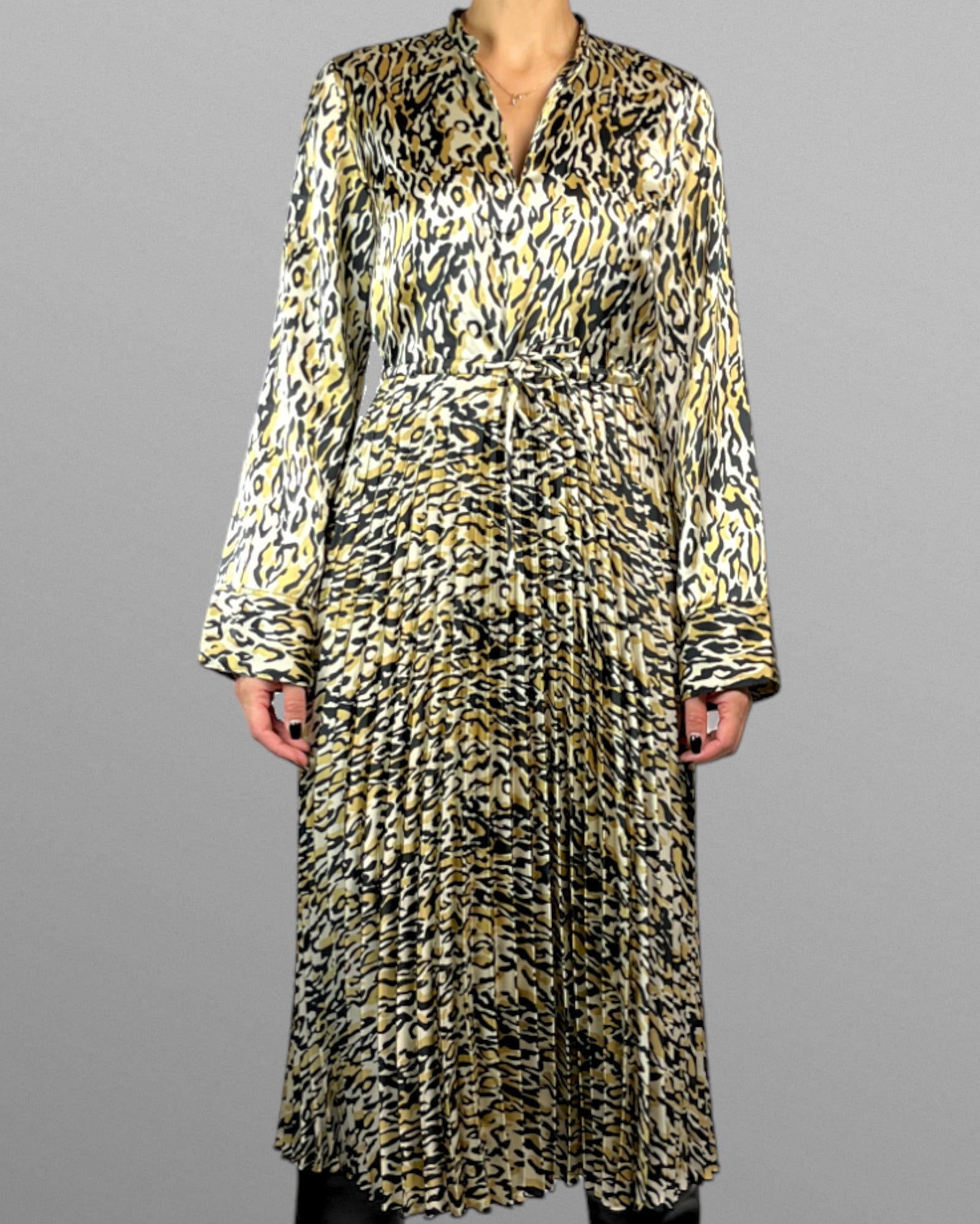 Leopardmönstrad midiklänning från Arket. Fint plisserad och med dragsko i midjan som ger en fin silhuett.