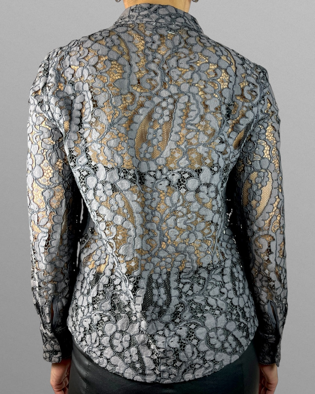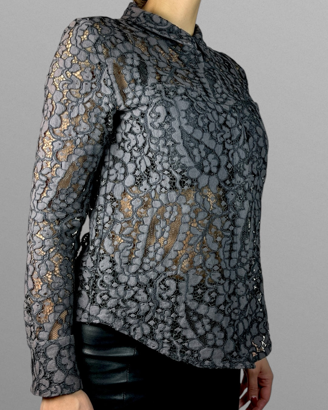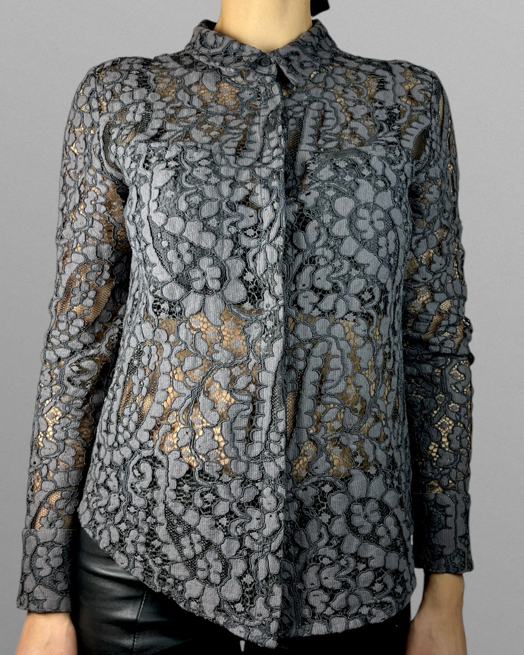 Vacker grå skjorta i spets med dold knäppning. Passar fint till både vardag och fest.