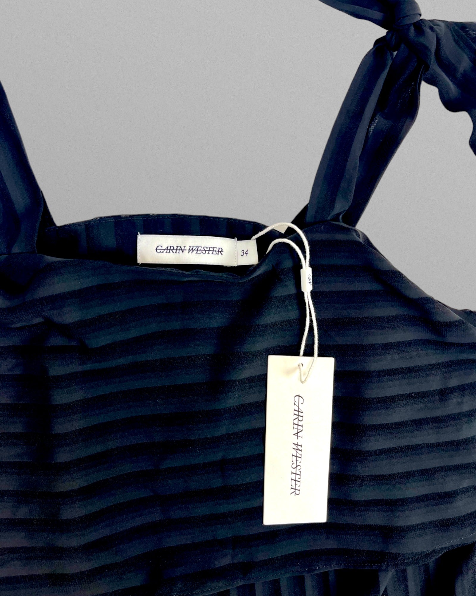 Underbar svart klänning med volanger och knytband över axlarna. Storlek 34, men passar även dig som är en storlek 36.