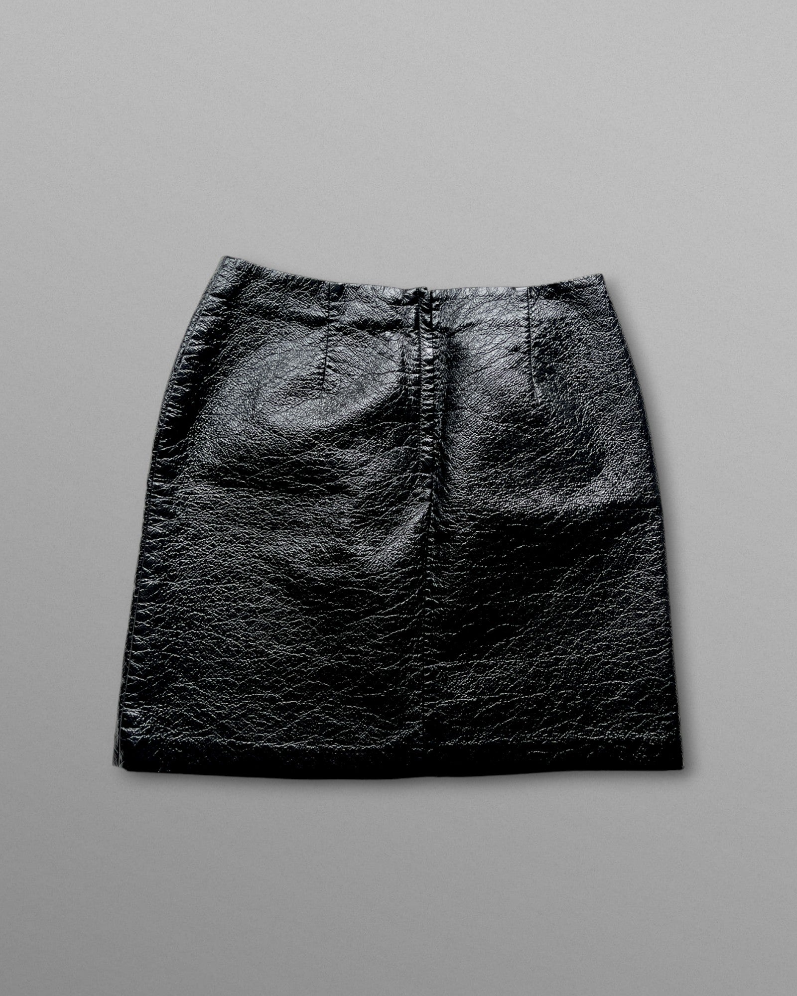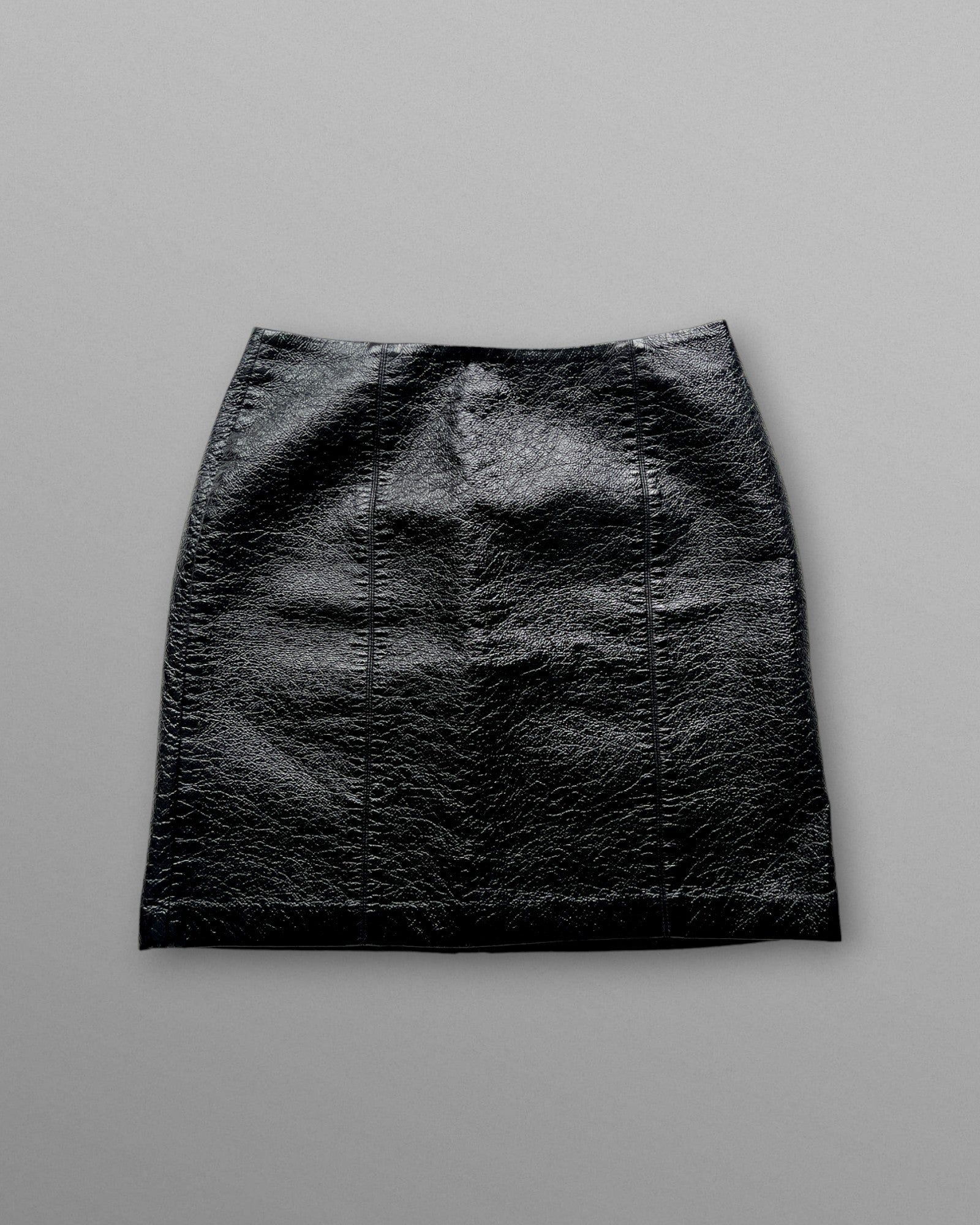 Svart lackad kort kjol.