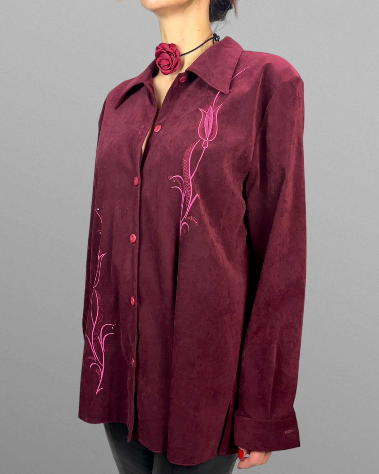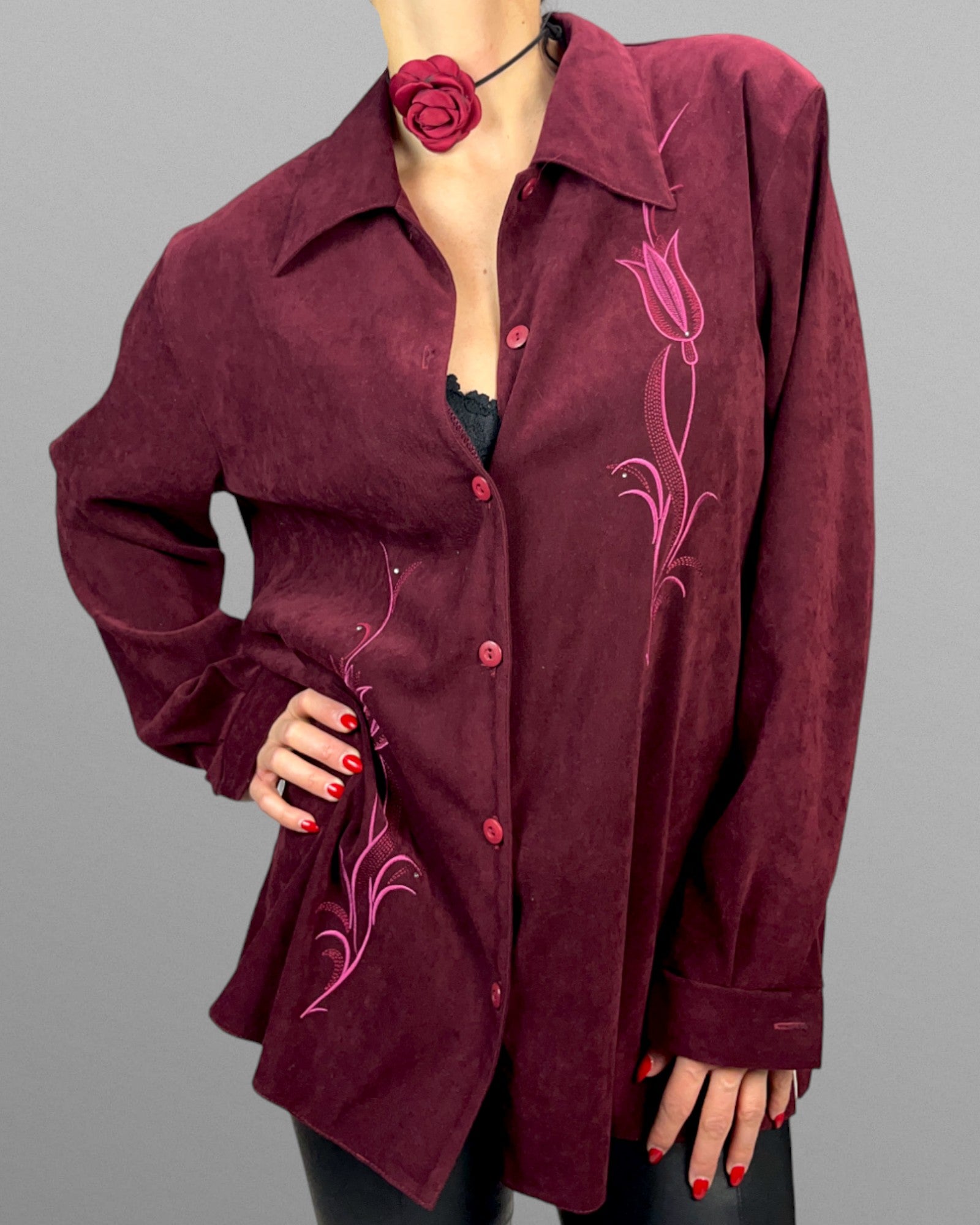 Vinröd skjorta med broderier